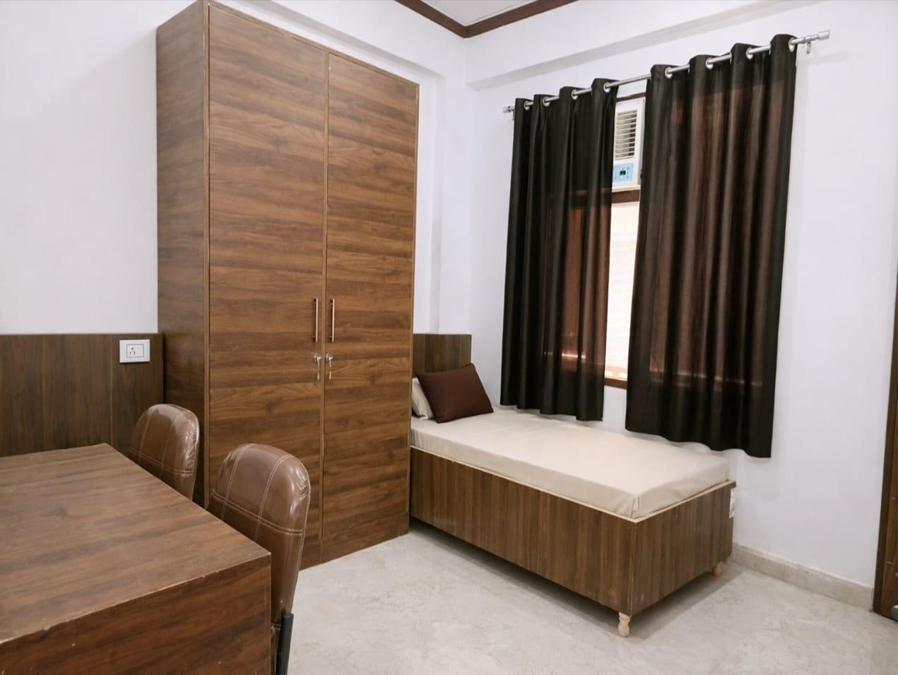 Enjoy rooms equipped with study tables, cushioned chairs, storage beds, fans, wardrobes, mattresses, geysers for winter, RO water, 24/7 water supply, and uninterrupted power supply for ACs and lights.